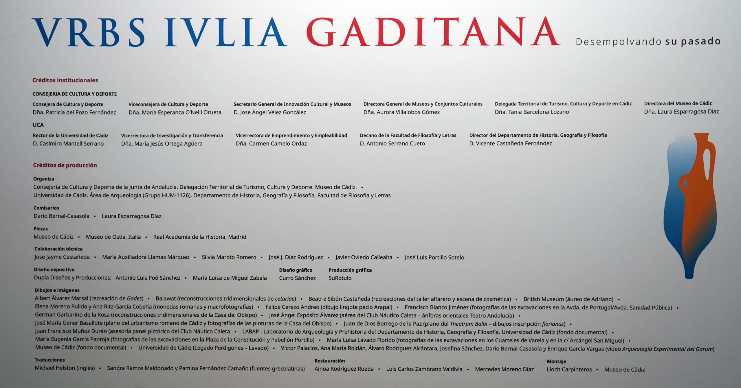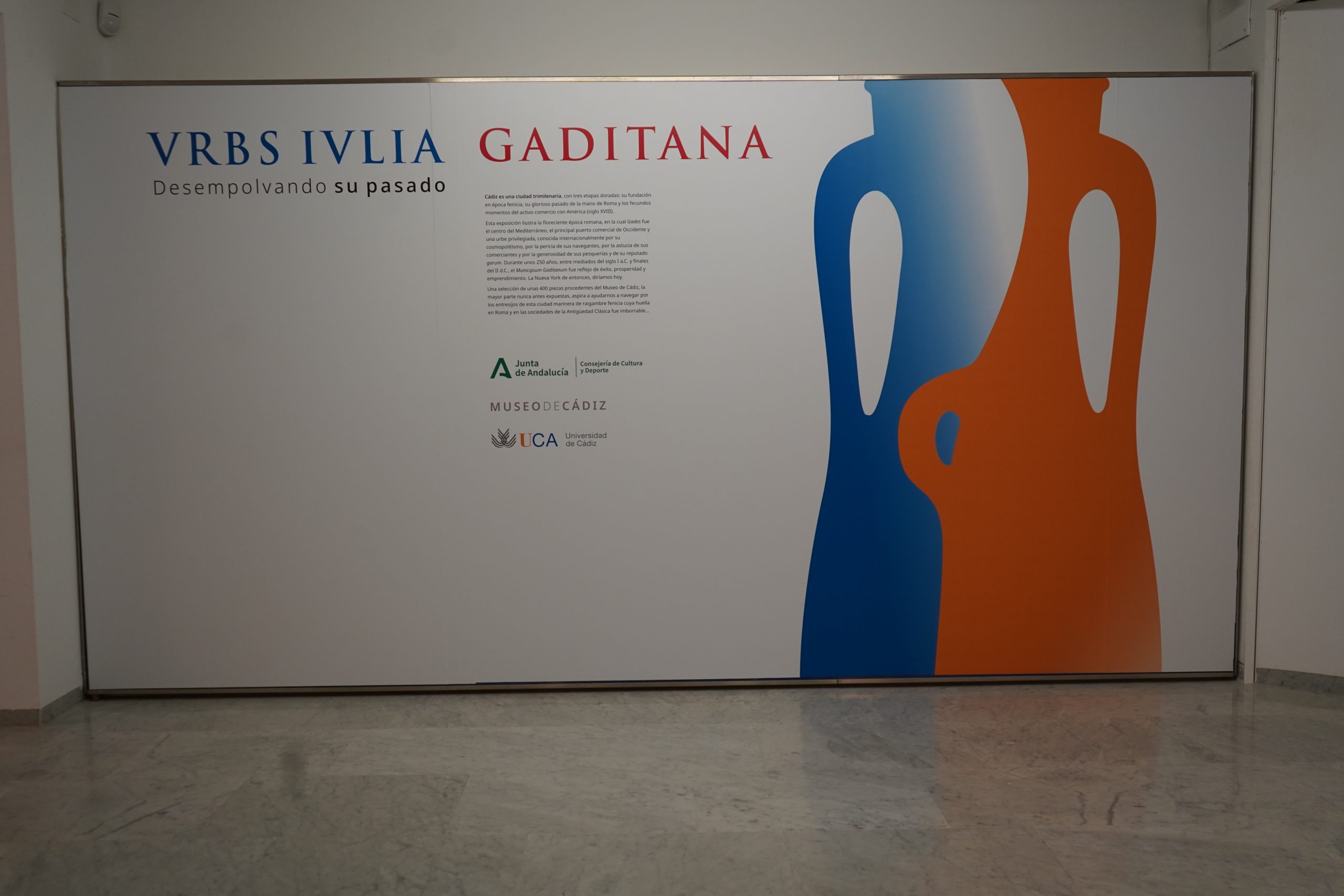 La exposición VRBS IVLIA GADITANA. DESEMPOLVANDO SU PASADO es una exposición temporal que puede visitarse en la Casa Pinillos del Museo de Cádiz entre septiembre de 2025 y marzo de 2026 y que ha sido organizada por el propio Museo de Cádiz y la Universidad de Cádiz. El horario de visita es de martes a sábado de 10.00 a 14.00 h y de 16.00 a 20.00 h y los domingos de 10.00 a 15:00 h.