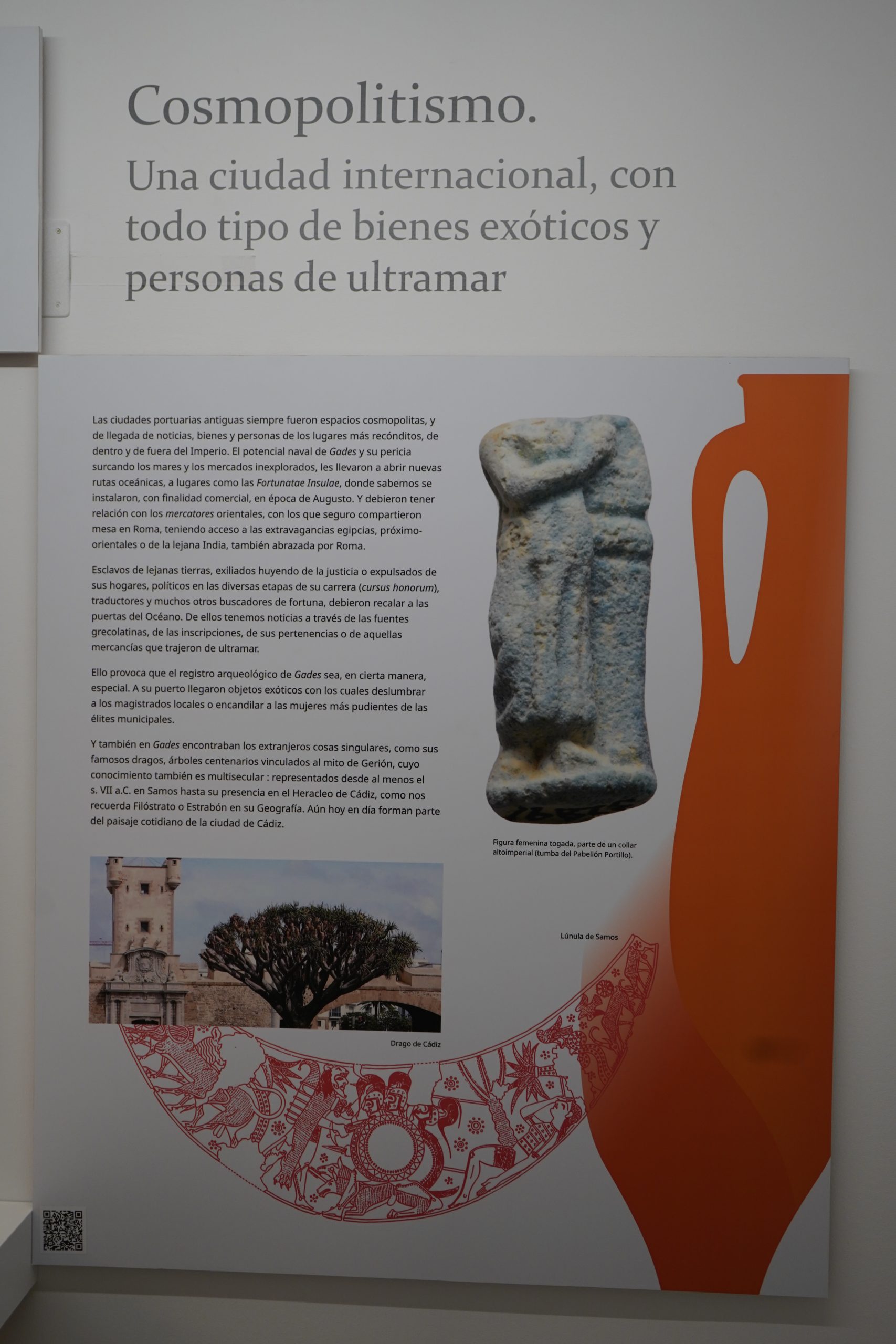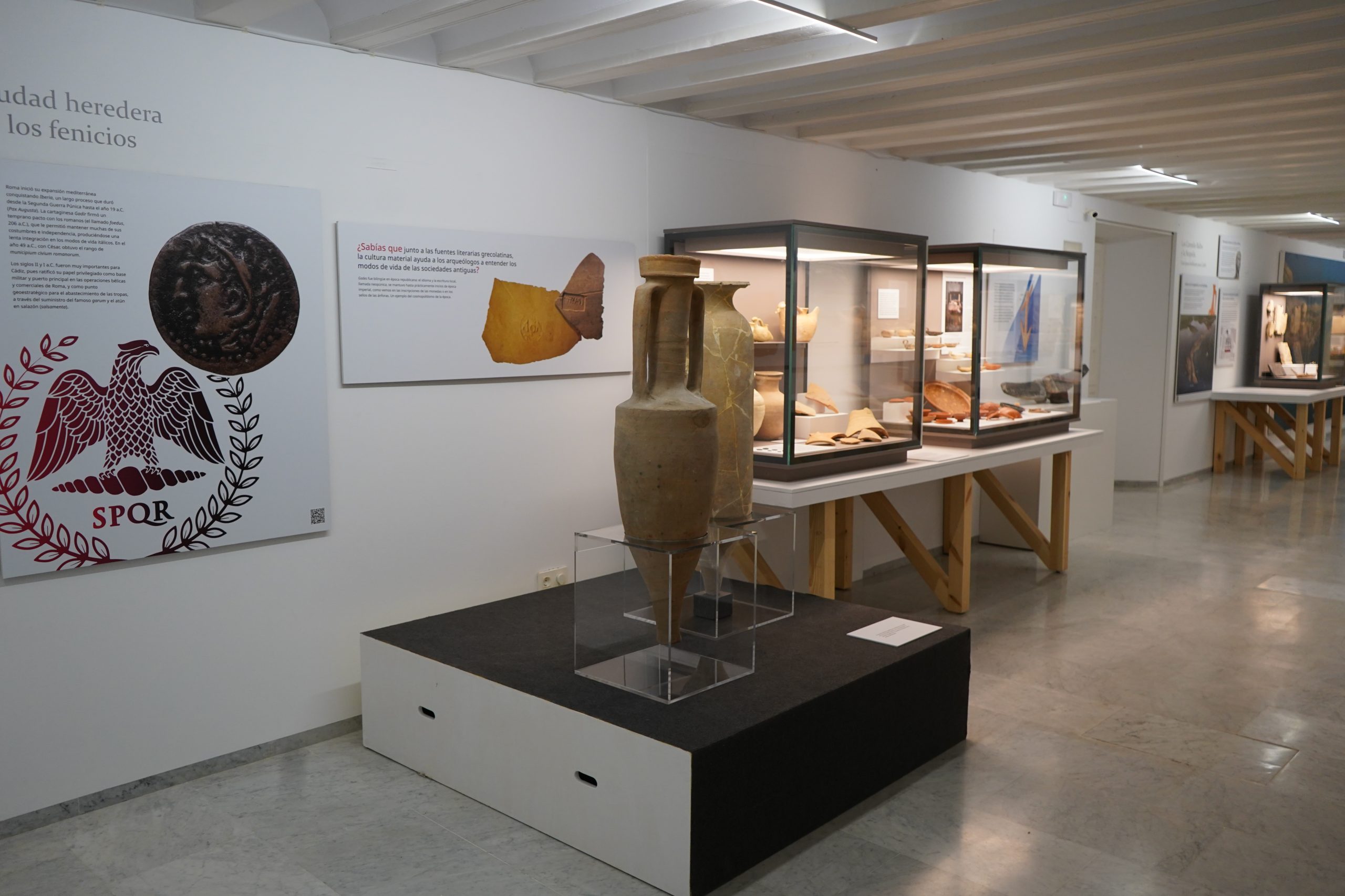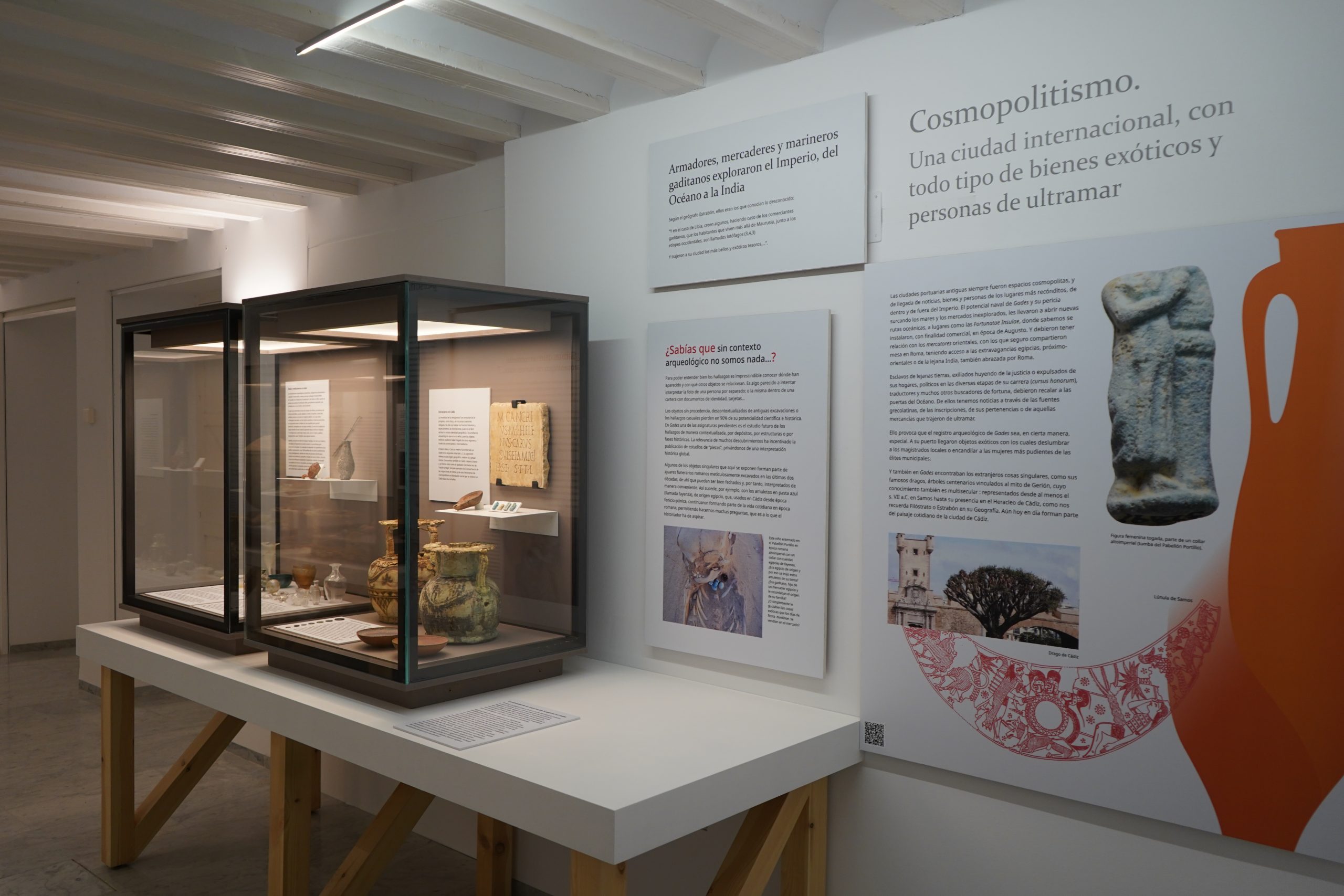 Esta exposición arroja luz sobre el floreciente periodo romano, cuando Gades se encontraba en el corazón del Mediterráneo, era el principal puerto comercial de Occidente y una ciudad privilegiada, reconocida internacionalmente por su carácter cosmopolita, la habilidad de sus marineros, la astucia de sus comerciantes y la abundancia de sus pesquerías y su famoso garum.