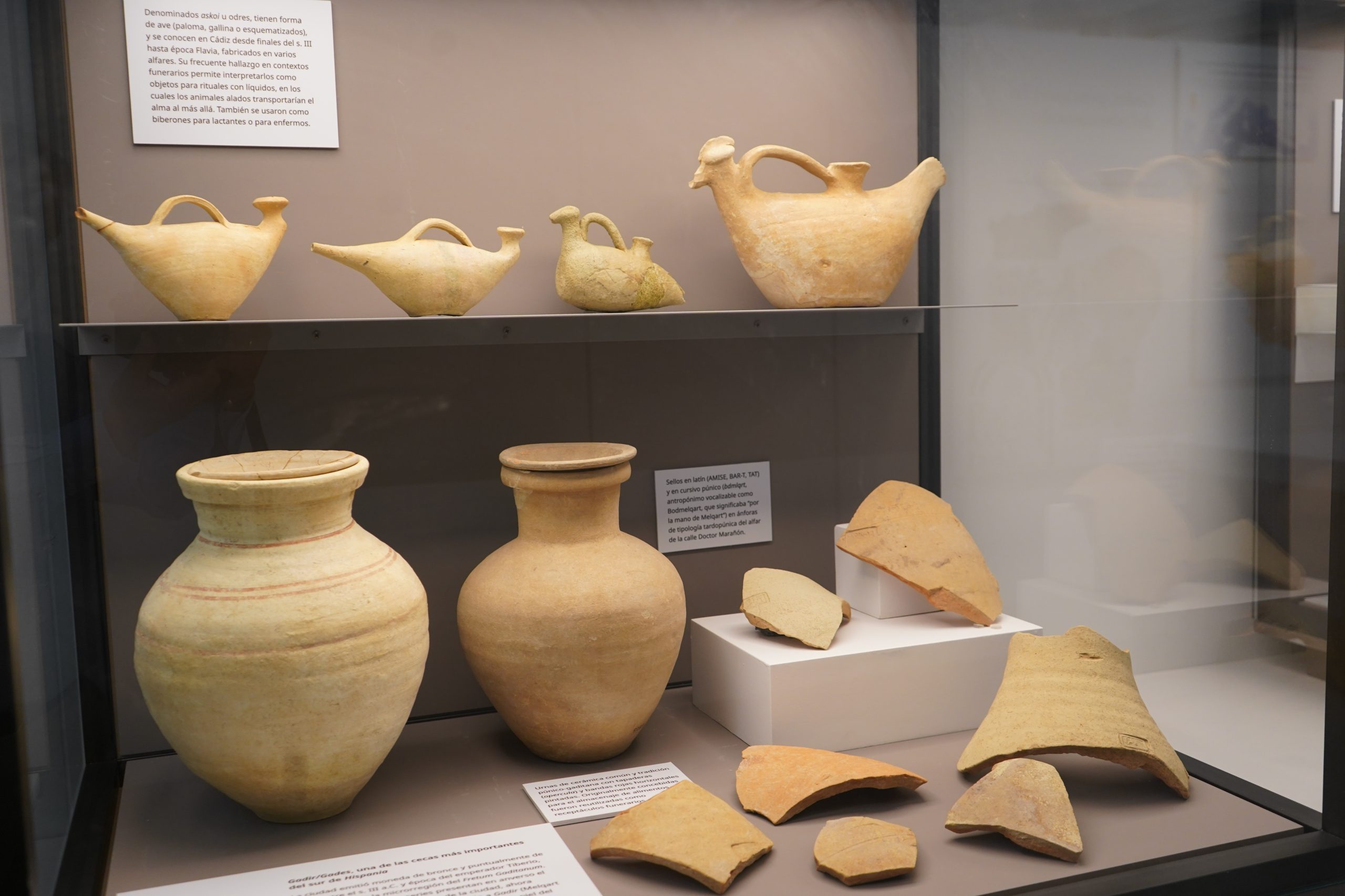 Junto a las fuentes literarias grecolatinas, la cultura material ayuda a los arqueólogos a entender los modos de vida de las sociedades antiguas. Gades fue bilingüe en época romanorrepublicana: el idioma y la escritura local, llamada neopúnica, se mantuvo hasta prácticamente inicios de época imperial, como vemos en las inscripciones de las monedas o en los sellos de las ánforas. Un ejemplo del cosmopolitismo de la época.