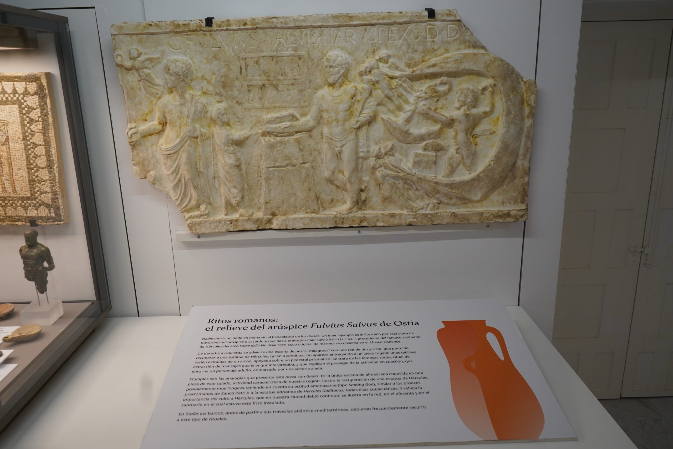 Nadie movía un dedo en Roma sin el beneplácito de los dioses. Un buen ejemplo es el ilustrado por esta placa de travertino del arúspice o sacerdote que hacía presagios Caio Fulvio Salvo (s. I a.C.), procedente del famoso santuario de Hércules del Area Sacra della Via della Foce, cuyo original de mármol se conserva en el Museo Ostiense.