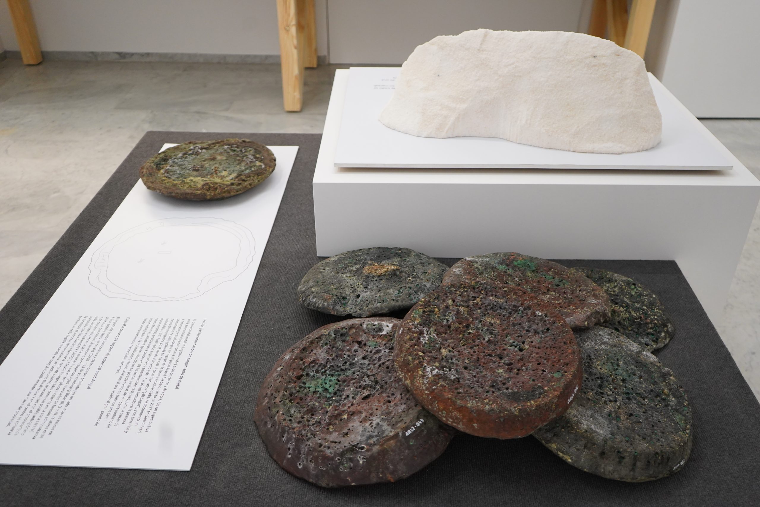 El pecio Arapal fue descubierto en 2017 en aguas someras de Sancti Petri, y excavado y estudiado recientemente por un equipo de la Universidad de Cádiz en el marco de su Master de Arqueología Náutica y Subacuática. Se documentó un amplio cargamento compuesto por 78 lingotes de forma casi circular (llamados “galápagos”), y de tamaños y pesos diversos (entre 22-38 cm de diámetro y de 13 a 26 kg de peso), uno de los más grandes conocidos en todo el Mediterráneo, fechado en la primera mitad del s. I d.C. Analizados arqueométricamente son de cobre prácticamente puro (99%), y junto a las trazas de plomo, plata y arsénico que presentan han permitido proponer su procedencia de las minas piríticas del suroeste peninsular, posiblemente del entorno de Sierra Morena. Al haber aparecido solo metal posiblemente se trate de una fase intermedia previa a la redistribución, en la cual el metal era llevado al gran puerto de Gades previamente a su reexpedición comercial.