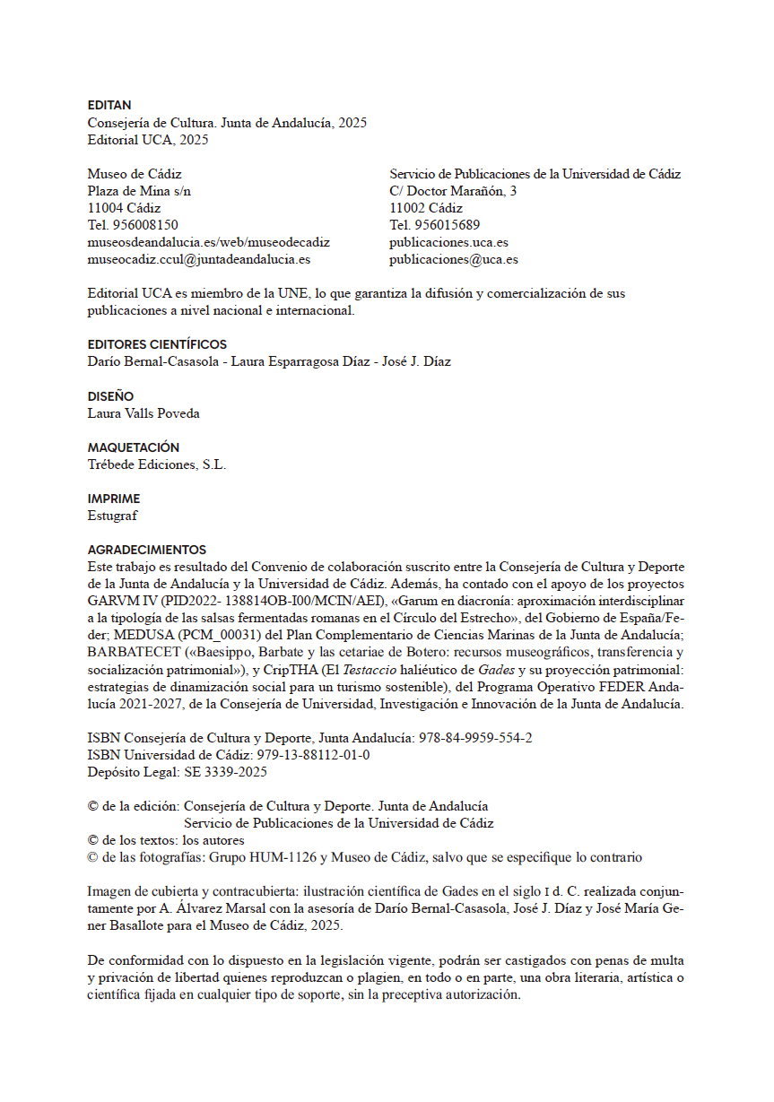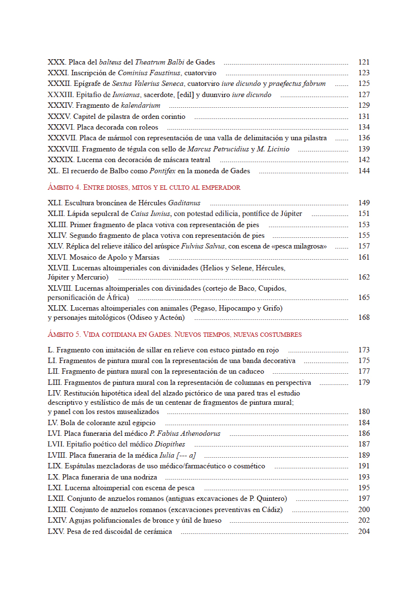 Con motivo de la exposición URBS IVLIA GADITANA se ha editado una monografía por parte de la Editorial UCA y la Consejería de Cultura y Deporte de la Junta de Andalucía en la que se presentan un total de 142 fichas catalográficasque contienen más de 300 piezas arqueológicas, la mayoría inéditas. Cada una de las fichas cuenta con un primer bloque de datos concretos como definición, cronología, contexto, material y dimensiones; para posteriormente desarrollar un apartado descriptivo de campo abierto y finalizar con las referencias bibliográficas y las ilustraciones fotográficas a escala. Asimismo, al catálogo de fichas lo preceden dos artículos iniciales; la primera sobre el valor de las exposiciones temporales en los museos (J.I. Vallejo) y la segunda como análisis descriptivo y cualitativo de la propia exposición por parte de sus comisarios (D. Bernal y L. Esparragosa).